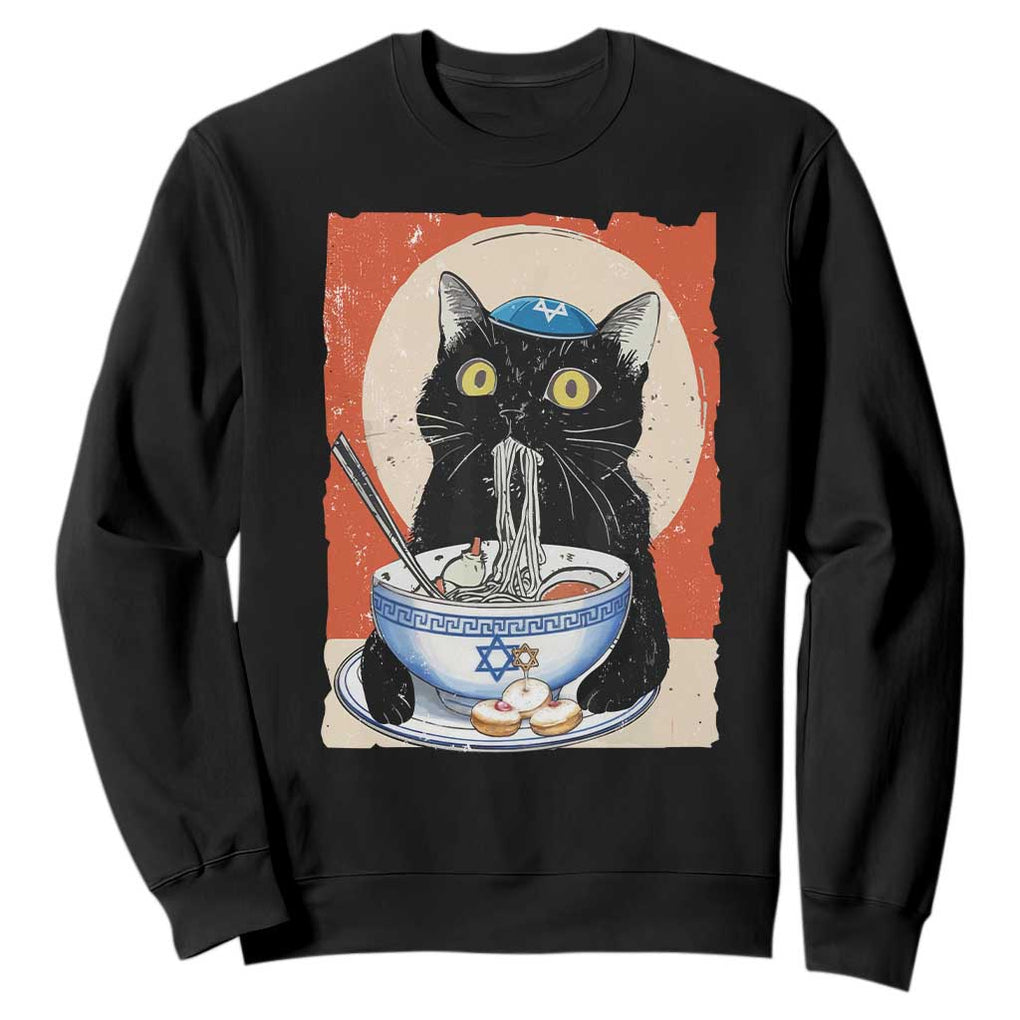 Funny Hanukkah Black Cat Eating Noodle Sweatshirt TS11