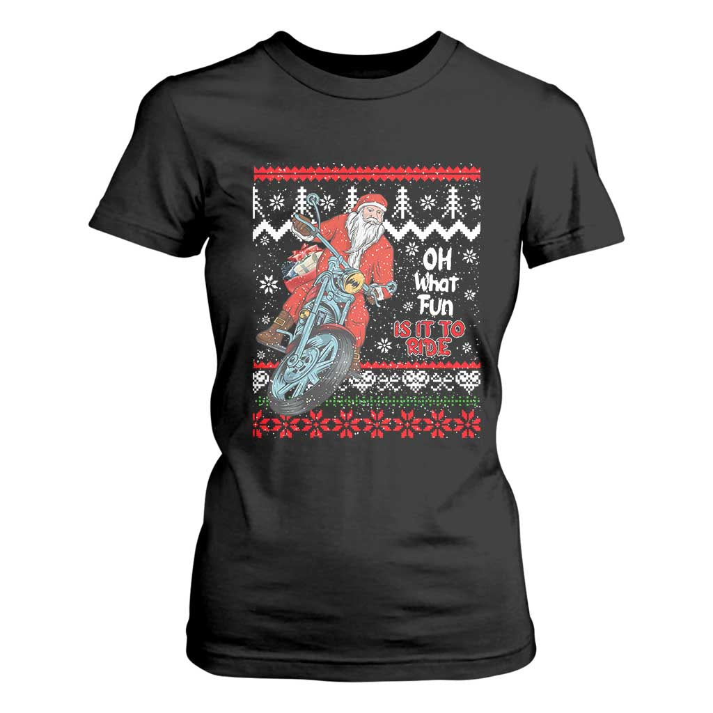 Biker Santa Claus T Shirt For Women Christmas Motorcycle Oh What Fun It Is To Ride Ugly Sweater TS02