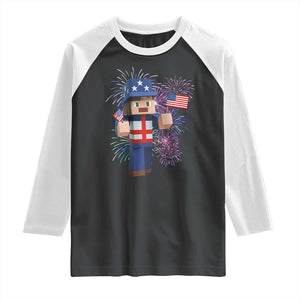 4th of July Gamer Raglan Shirt Uncle Sam Pixels Gaming Celebrate Independence Day