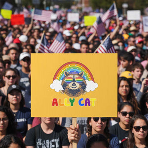 Ally Street Cat Rainbow Raccoon Protest Sign Funny LGBTQ+ Pride Support