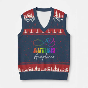 Autism Acceptance V-Neck Knit Sweater Vest Advocate Educate Accomodate Include Rainbow Infinity Symbol