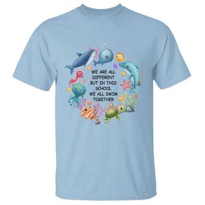 Placeholder Back To School T Shirt We Are All Different But In This School We All Swim Together Sea Animals - PrintYourWear - Print Your Wear