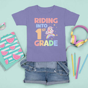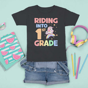 Back To School Unicorn T Shirt For Kid Riding Into 1st Grade Rainbow Star TS11