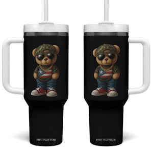 Camo Teddy Bear Puerto Rico Flag Tumbler With Handle Camouflage Rican Boricua