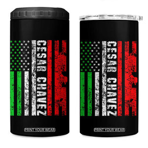 Cesar Chavez 4 in 1 Can Cooler Tumbler American Mexican Flag Patriotic Mexico Distressed