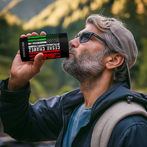 Cesar Chavez 4 in 1 Can Cooler Tumbler American Mexican Flag Patriotic Mexico Distressed TS02