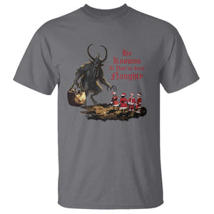Placeholder Christmas Krampus T Shirt He Knows If You've Been Naughty - PrintYourWear - Print Your Wear