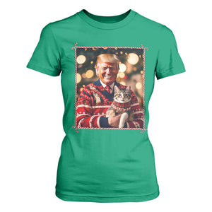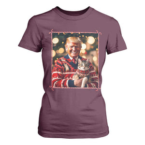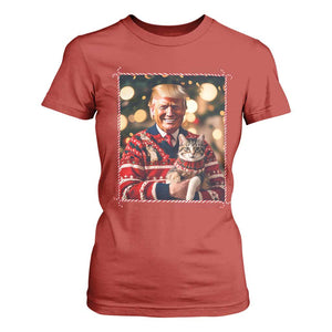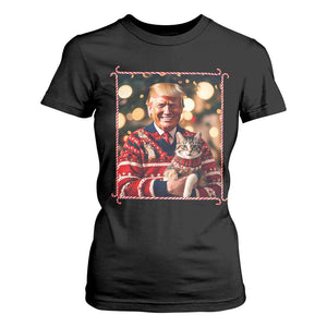 Christmas Trump With Cat Graphic T Shirt For Women Classic Festive Xmas Vibe TS02
