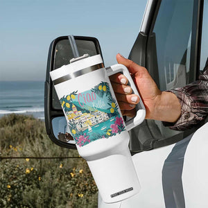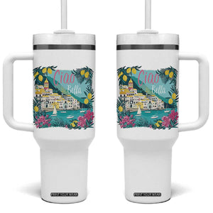 Placeholder Ciao Bella Italy Amalfi Coast Tumbler With Handle Lemons and Florals Nostalgic Village - PrintYourWear - Print Your Wear