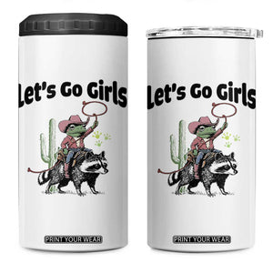 Placeholder Cowboy Frog Riding Raccoon 4 in 1 Can Cooler Tumbler Let's Go Girls - PrintYourWear - Print Your Wear