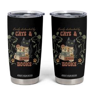 Placeholder Cute Bookworm Gift Tumbler Cup Easily Distracted By Cats And Books - PrintYourWear - Print Your Wear