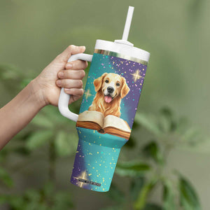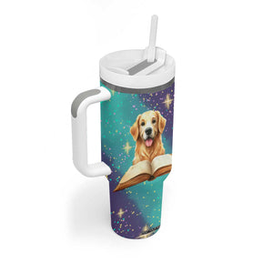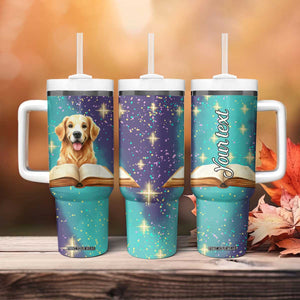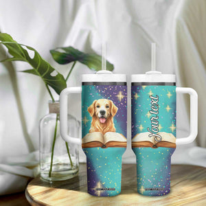 Cute Golden Retriever Reading Books Tumbler With Handle Personalized