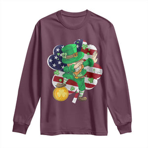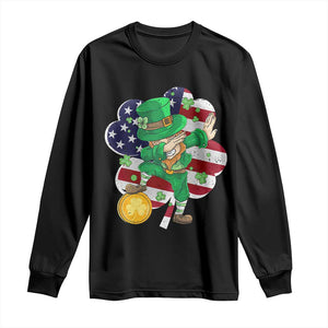 Cute St Patricks Day Long Sleeve Shirt Dabbing Leperchaun American Flag Shamrock