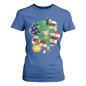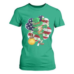 Cute St Patricks Day T Shirt For Women Dabbing Leperchaun American Flag Shamrock