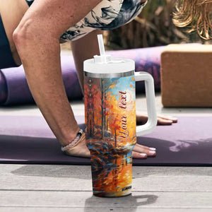 Deer In Colorful Forest Tumbler With Handle Personalized