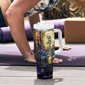 Deer Stained Glass Tumbler With Handle Personalized TS04