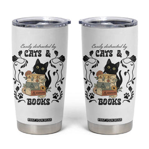 Easily Distracted By Cats And Books Tumbler Cup Funny Book Kitty Lover TS12
