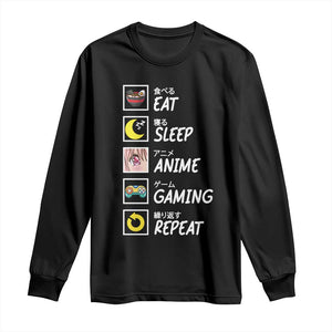 Eat Sleep Anime Gaming Repeat Long Sleeve Shirt Kawaii Otaku Gamer Manga Ramen Lover TS02