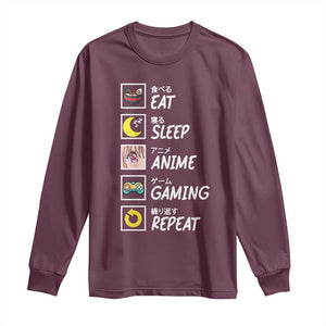 Eat Sleep Anime Gaming Repeat Long Sleeve Shirt Kawaii Otaku Gamer Manga Ramen Lover