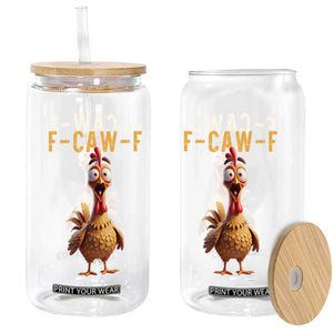 Stay Hydrated in Style with Our Funny F-Caw-F Chicken Clear Glass Can!