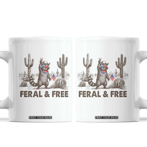 Feral & Free Raccoon Coffee Mug Funny 4th of July Cowboy Meme Retro Independence Day