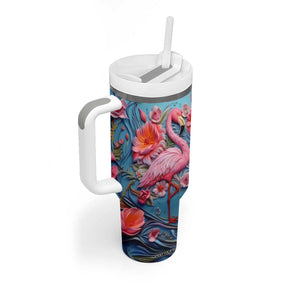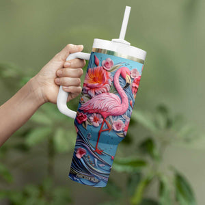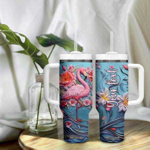 Flamingo Leather Carving Tumbler With Handle Personalized TS04