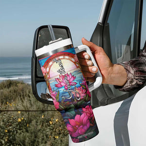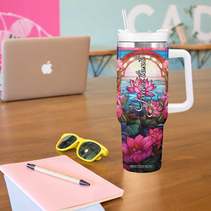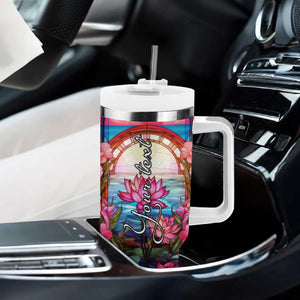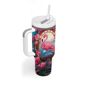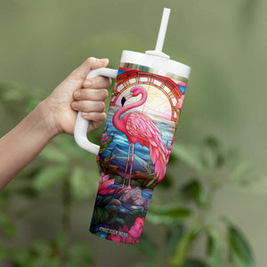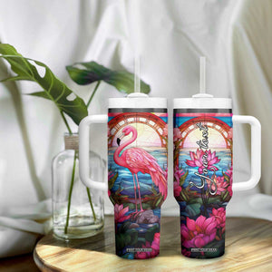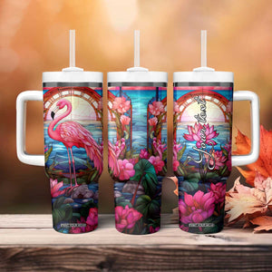 Flamingo Mosaic Tropical Garden Tumbler With Handle Personalized