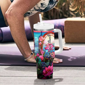 Flamingo Mosaic Tropical Garden Tumbler With Handle Personalized TS04