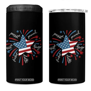 Funny 4th of July Fireworks Foxtrot Delta Tango 4 in 1 Can Cooler Tumbler