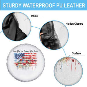 Funny 4th Of July Land Of The Free Because Of The Brave Spare Tire Cover American Flag Flowers TS11