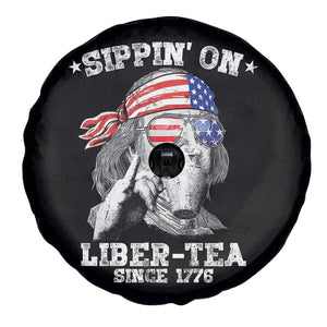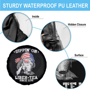 Placeholder Funny 4th Of July Spare Tire Cover Sippin On Liber Tea Liberty Ben Franklin 1776 USA Flag - PrintYourWear - Print Your Wear