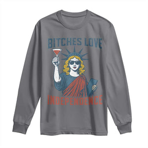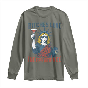 Funny 4th of July Statue of Liberty Cocktail Long Sleeve Shirt Retro Bitches Love Independence