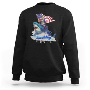 Funny 4th Of July Sweatshirt George Washington Riding Shark Patriotic Independence Day