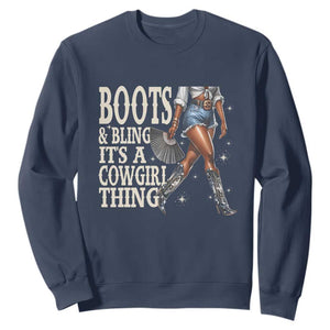 Placeholder Funny African American Cowgirl Sweatshirt Boots And Bling It's A Cowgirl Thing - PrintYourWear - Print Your Wear