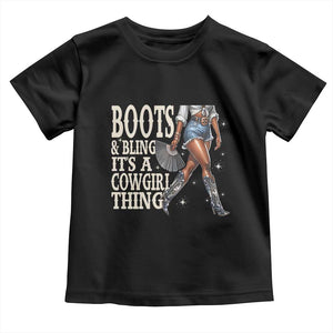 Placeholder Funny African American Cowgirl Toddler T Shirt Boots And Bling It's A Cowgirl Thing - PrintYourWear - Print Your Wear