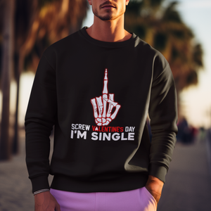 Funny Anti Valentines Sweatshirt Screw Valentine's Day I'm Single Skeleton Middle Finger