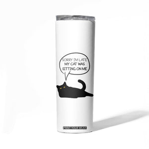 Placeholder Funny Black Cat Skinny Tumbler Sorry I'm Late My Cat Was Sitting On Me Humor Saying Coffee Cup Of Kitty Owners - PrintYourWear - Print Your Wear