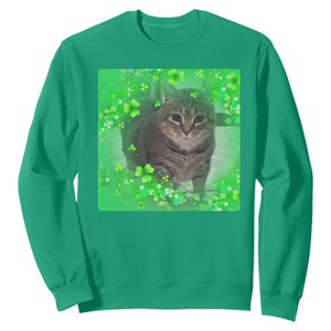 Funny Cat Meme St Patricks Day Sweatshirt Lucky Shamrock Goofy Ahh Cat