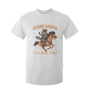 Funny Christmas Raccoon T Shirt For Kid Sorry Santa I've Been Feral Cowboy