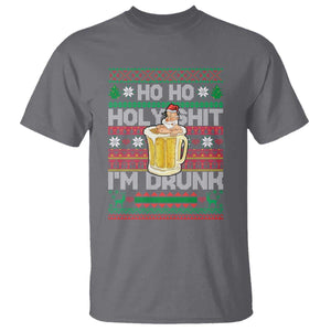 Funny Christmas T Shirt Ho Ho Holy Shit I'm Drunk Santa Drinking Beer