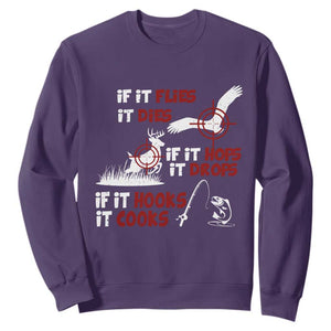 Cozy never looked so cool. Whether you're layering up for chilly mornings, lounging in comfort, or stepping out with confidence, the Funny Fishing Hunting Sweatshirt If It Flies It Dies If It Hops It Drops If It Hooks It Cooks is your perfect blend of softness, durability, and standout design. Made for self-expression, made to last.