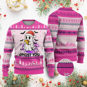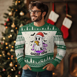 Placeholder Funny Ghost Halloween Xmas Ugly Christmas Sweater Ghost You - PrintYourWear - Print Your Wear