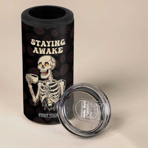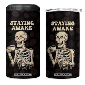 Funny Halloween Iced Coffee 4 in 1 Can Cooler Tumbler Skeleton Drinking Coffee Coffee Caffeine Lover Coffee Brewer Staying Awake TB10