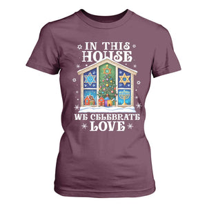 Funny Hanukkah Christmas T Shirt For Women In This House We Celebrate Love Chrismukkah
