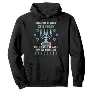 Funny Hanukkah Hoodie Imagine If Your Cellphone Was At 10% But Lasted 8 Days Menorah