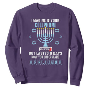 Funny Hanukkah Sweatshirt Imagine If Your Cellphone Was At 10% But Lasted 8 Days Menorah