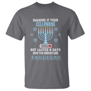 Funny Hanukkah T Shirt Imagine If Your Cellphone Was At 10% But Lasted 8 Days Menorah