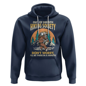 Funny Hiking Bigfoot Hoodie Out Of Breath Hiking Society Don't Worry I'll Be There In A Minute