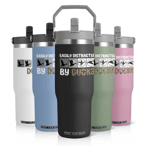 Placeholder Funny Hunting Gift Flip Straw Tumbler Easily Distracted By Ducks Outdoor Lover - PrintYourWear - Print Your Wear