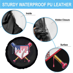 Funny Ice Cream Baseball Drip American Flag Spare Tire Cover 4th Of July